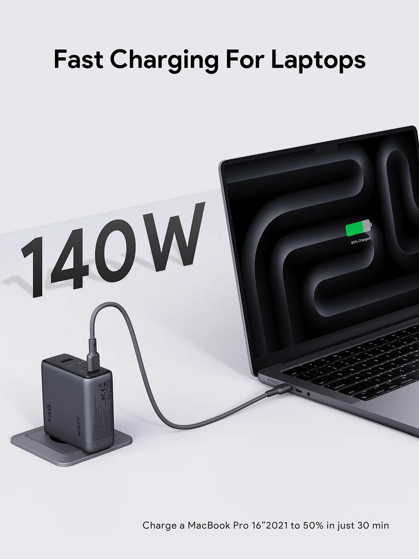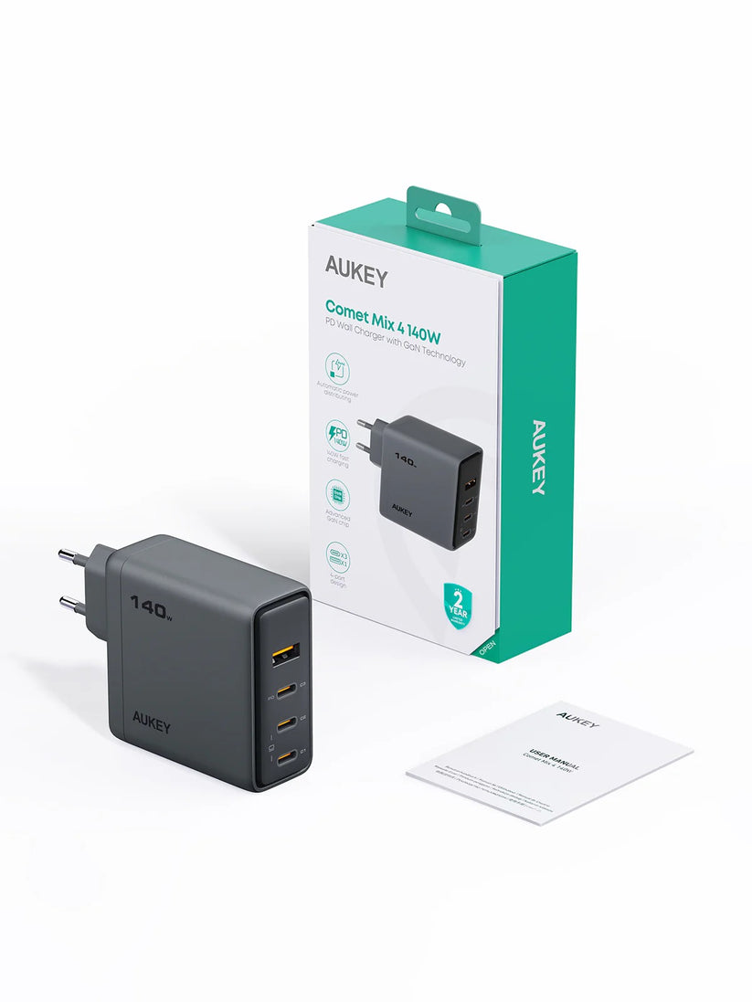 AUKEY Comet Mix 4 140W PD 4-Port GaN Wall Charger with PPS for Laptop & Mobile